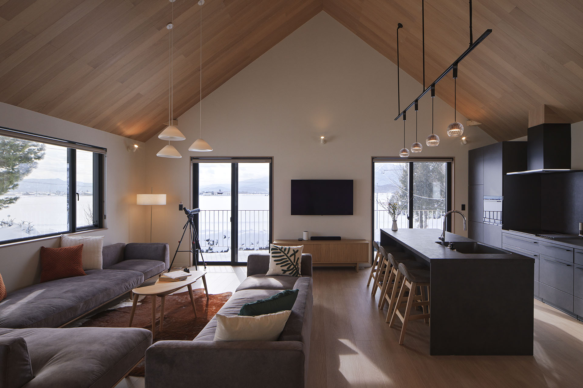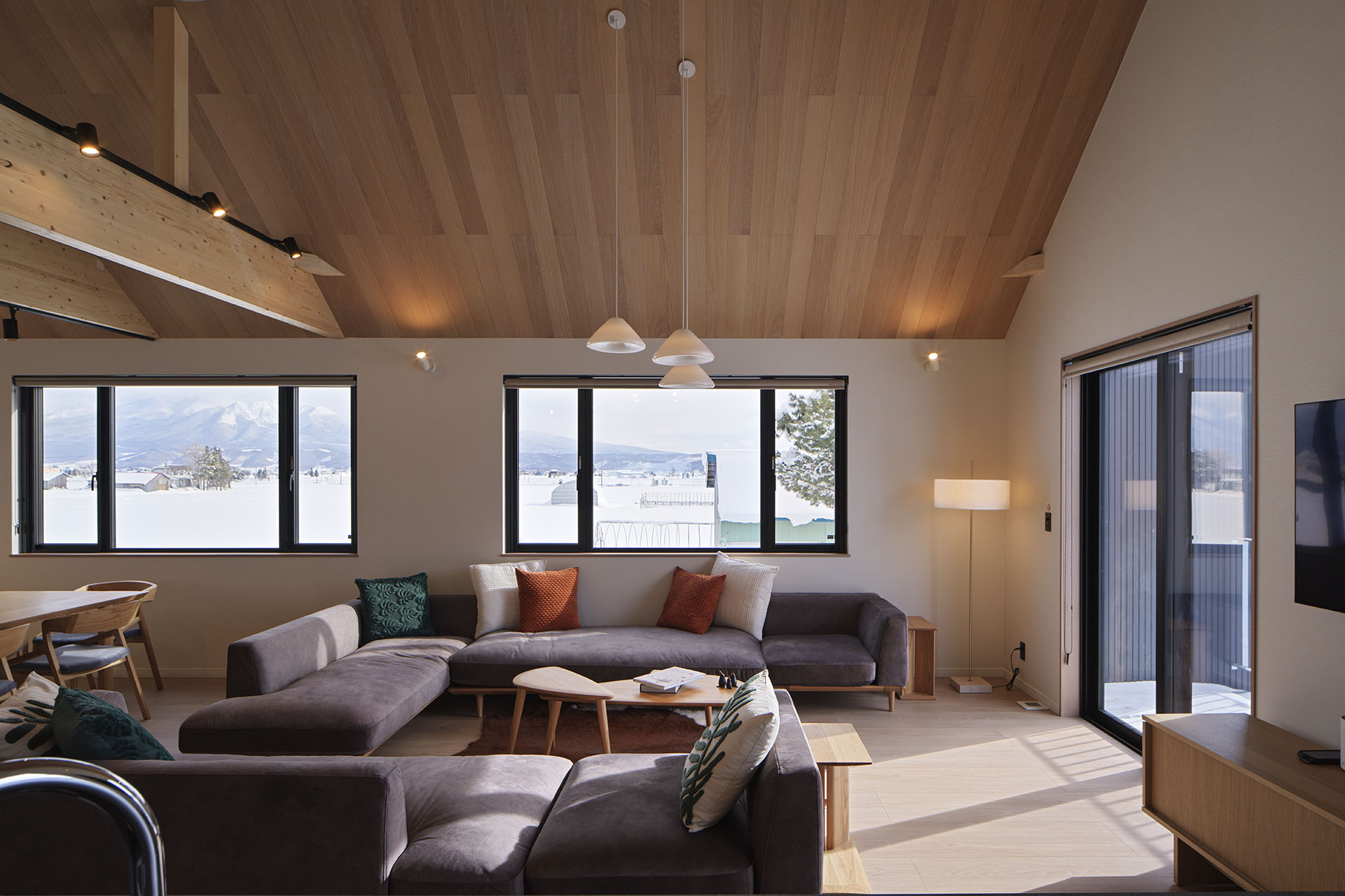 When you think of Furano, imagine soft winter snow, fragrant lavender fields in summer, and vibrant autumn colors. When you think of Villa Matsu, picture panoramic mountain views, stunning surroundings, and a truly convenient location. Villa Matsu is designed for those who love nature without giving up comfort. The spacious open-plan living, dining, and kitchen area is perfectly placed to show sweeping views of the Tokachi Mountain Range. From the balcony, you can enjoy uninterrupted views of Mount Ashibetsu, with rice paddies, farmland, and seasonal lavender fields stretching below. It is an ideal setting for a peaceful and relaxing getaway. The villa has three bright and generously sized bedrooms. The spa-style bathroom comes with luxury toiletries and underfloor heating for a truly indulgent experience. Built for year-round comfort, Villa Matsu is fully heated in winter and air-conditioned in summer, making it the perfect home base to enjoy Furano’s outdoor activities in any season.
